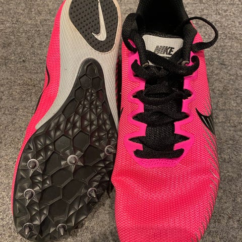 Piikkareita 4 eri paria. Koot kuvassa vasemmalta oikealle (36. 23cm)hinta 20€,(34,5. 22cm)hinta5€,(35,5. 22,75cm)hinta 20€ ja(34,5. 22cm)hinta 5€. Keltaisissa asicsissa oikeassa kengässä pinnassa reikä. Ei läpi asti. Kuva kengästä.Hinta keltaselle parille 5€.