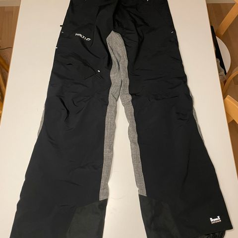 Myydään miesten Halti DrymaxX housut. Koko M, pituus vyötäröltä alas 116 cm ja vyötärönympärys 90 cm (venyy hieman lisää koska kuminauha). Housuissa on verkkovuori paitsi lahkeen alaosat tiivis vuorikangas. Päällikangas 100% polyesteria ja vuori 100% polyamidia. Toisessa lahkeessa ihan pieni reikä, kts.viimeinen kuva.