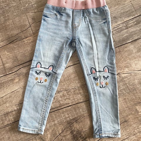 Myydään tyttöjen farkkulegginsit. Koko 122. Vyötärössä säätömahdollisuus. Nouto Veisu/Koivistonkylä.