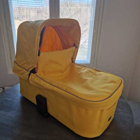 Myydään Oran Sisu -vaunukoppa kaksosille. Väri kantarelli. Siistissä kunnossa. Säilytetty sisätiloissa.