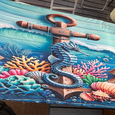 Merihenkinen tervetuloa kyltti ja koristepullot