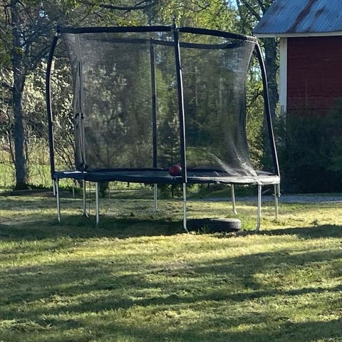 Hyvänkuntoinen ja toimiva trampoliini lapsille, trampoliinissa turvaverkot. Halkaisija n. 3 m. Vain nouto