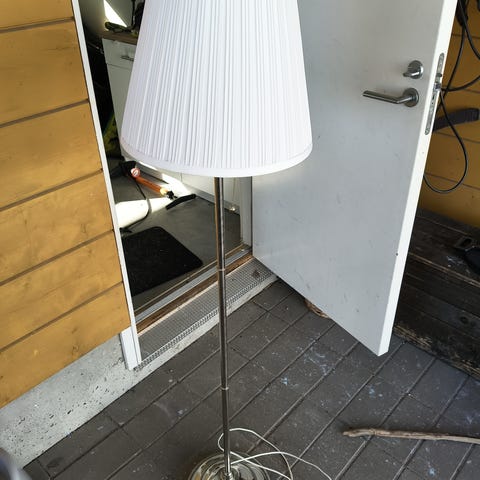 Tukeva metallinen lattiavalaisin.