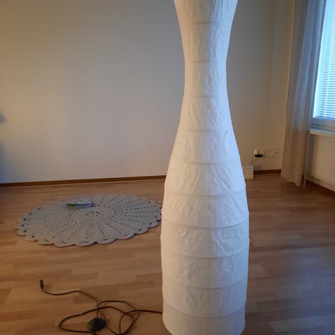 Korkeus 150cm, varjostimen halkaisija alaosasta 49,5cm.