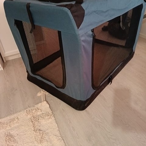 Hyvä kunto, pohjamuovi hieman kupruuntunut säilytyksessä. pituus n.106cm, leveys n.67cm ja korkeus n.69cm