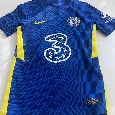 Nike Chelsea Dri-Fit pitkähihainen treenipaita koossa S. Paita on valkoinen, jossa mustat hihat ja vaaleanruskea olkapääosa. Edessä Chelsea-seuran merkki, Nike-logo ja trivago-teksti. Puolivetoketju kauluksessa. Dri-Fit-materiaali on hengittävää ja kosteutta siirtävää, soveltuu jalkapalloharjoitteluun ja muuhun urheiluun.