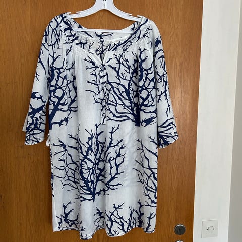 Ihana pirteä tunika taskuilla hiukan joustaa Italiainen kevyt puuvillaa / c o t t o n koko melko reilu kai-kai n 80.5 cm pituus n 79.5 cm ostajalle postitus kulut myös nouto