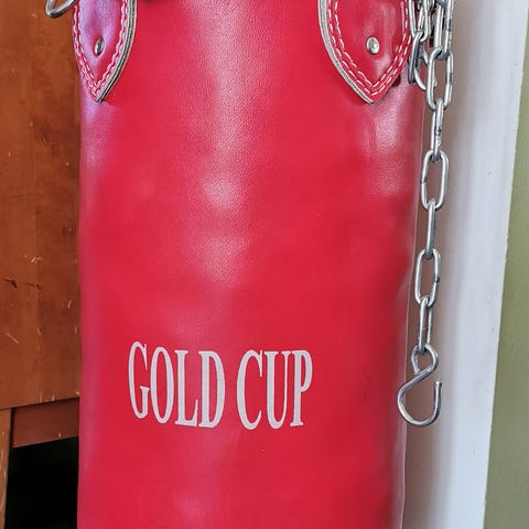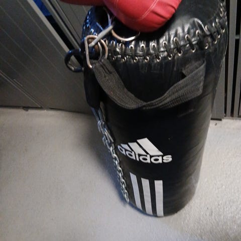 Energetics nyrkkeilysäkki musta. Ripustettava malli ketjuilla, soveltuu nyrkkeily- ja potkuharjoitteluun kotiin tai harjoitustilaan. Materiaalina synteettinen nahka, väri musta punaisilla yksityiskohdilla. Hanskat tulevat kaupan päälle. Kiinnitysjousi kattoon myös mukana. Valmis paketti.