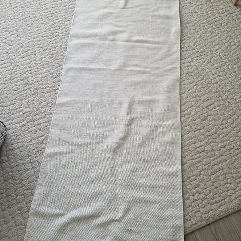Luonnonvalkoinen puuvillainen räsymatto.
