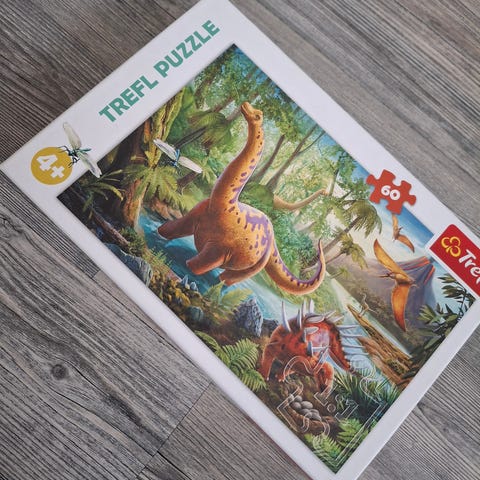 Hyväkuntoinen dinosaurus-aiheinen palapeli seuraavalle.