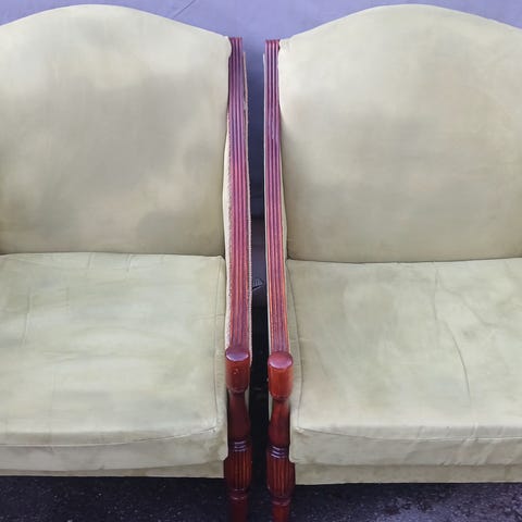 Vintage nojatuoli kukkakuosilla ja puuvarsilla