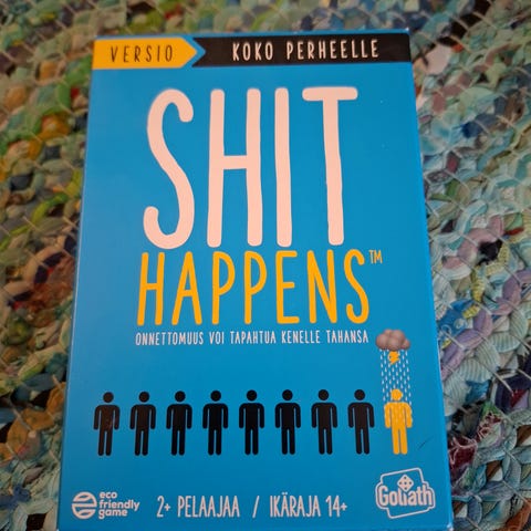 Shit Happens koko perheelle -lautapeli. Peli sisältää kortteja, joissa kuvataan erilaisia arjen ja elämän tilanteita, jotka pelaajat asettavat kurjuusindeksin mukaiseen järjestykseen. Pelilaatikossa on ohjeet ja kortit, ja peli on tarkoitettu vähintään kahdelle pelaajalle, suositusikä 14+. Peli on suomenkielinen versio ja soveltuu pelattavaksi perheen tai ystävien kanssa vapaa-ajan lautapelinä.