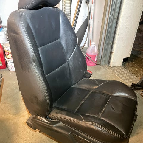 V70 mk1 nahkapenkit eteen. Kuskin penkki kulunut ja ompeleita korjattu. Vänkärin penkki melko siisti.