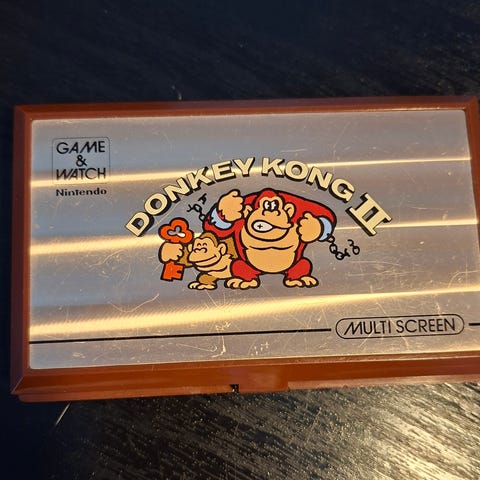 Myydään Gold Cliff Multi Screen Nintendo Game & Watch elektroniikka peli. Vintage / retro käsikonsoli vuodelta 1988. Hyvässä kunnossa ja kaikki toimii eli testattu toimivaksi. Paristokotelon kansi löytyy ja on alkuperäinen. Kannen lukitus toimii. Sarjanumerotarra paikoillaan. Model MV-64. Toimii kahdella LR44 paristolla. Ollut vain yhdellä omistajalla.