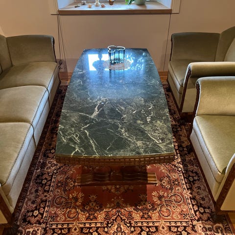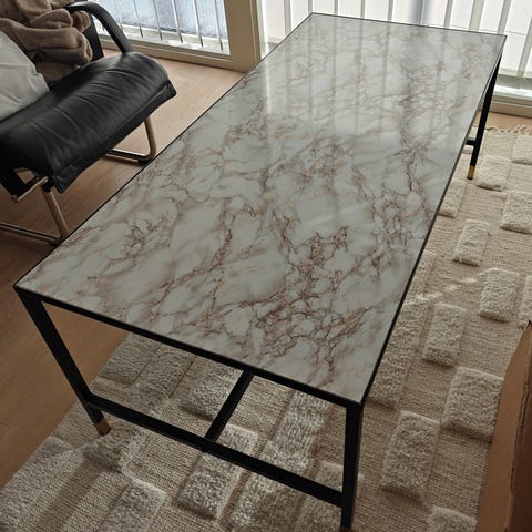 2 kpl mustia marmorinvärisiä sohvapöytiä. Pienemmän saa halutessaan isomman sisälle.