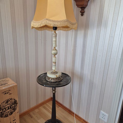 Taottu ja painava rautainen lattialampun jalka. Suomalaista käsityötä. Sähköistetty, toimiva. Myös toinen jalka myynnissä.