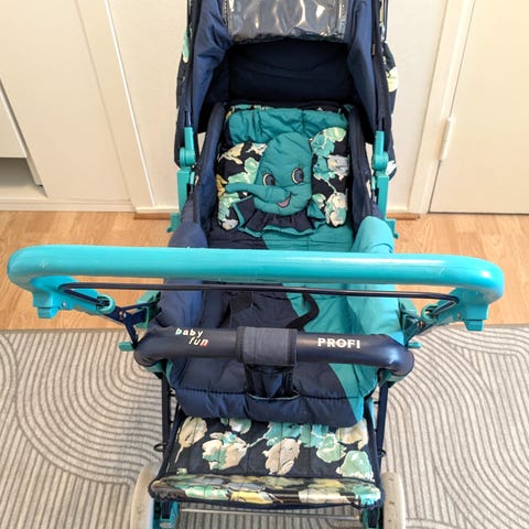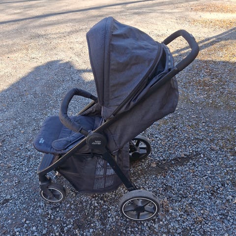 Nordic Crown matkarattaat harmaalla kankaalla ja mustalla rungolla. Rattaissa on täyskorkea selkänoja, viisipistevaljaat ja säädettävä selkänoja, joka mahdollistaa lepoasennon. Suuri kuomu. Edessä on keskeltä aukeava turvakaari ja alla tavarakori.