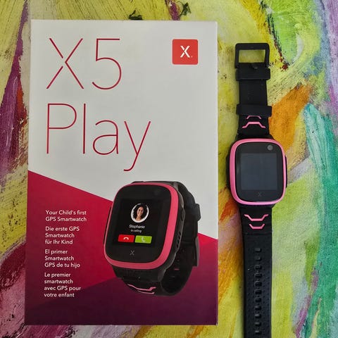Xplora X5 Play lasten älykello pinkillä rannekkeella. Mukana laturi ja alkuperäiset pakkaukset, näkyvät kuvassa. Soveltuu lapsen ranteeseen peruskäyttöön ja yhteydenpitoon Xplora-malliston ominaisuuksien mukaisesti.