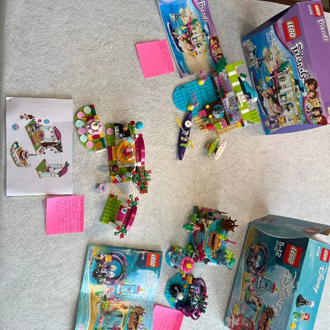 LEGO Friends rakennussarjat. Useita Friends-teemaisia settejä, joihin kuuluu rakennuspalikoita sekä kuvalliset rakennusohjeet. Sarjoissa on erilaisia rakennuskohteita, kuten talo ja pienempiä ympäristöjä. Sopii LEGO Friends -teemasta pitäville rakentajille.kaikki osat löytyy.setti no.41332 puuttuu muutama ohjesivu.toridiili/nouto/tuon myös lähiseudulle.