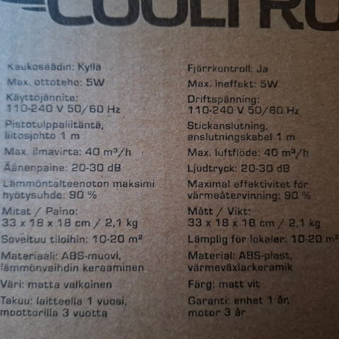 Ostettu väliaikais ilmanvaihtokoneeksi mutta jäi tarpeettomaksi. Edellinen omistaja purkasi toimivana ja mukana ohjaus paneeli ja seinäteline. Kuljetus onnistuu sovittaessa. Vallox Digit ilmanvaihtokone. Koneessa on neljä kanavaliitäntää yläosassa ja ohjauspaneeli, jossa säätöpainikkeet sekä merkkivalot muun muassa lämpötilalle ja mahdollisille hälytyksille. Soveltuu koneelliseen tulo- ja poistoilmanvaihtoon asuin- tai muihin tiloihin, joissa tarvitaan keskitettyä ilmanvaihtoa. Mukana ohjainpaneelin käyttöohje.