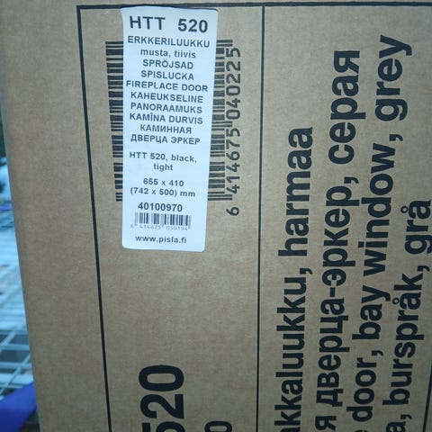 HTT 301 takan lasiluukku. Harmaa metallikehys ja suuri lasipinta. Soveltuu takkaan tai tulisijaan, jossa mitoitus ja kiinnitykset vastaavat HTT 301 -mallia. Luukku toimitetaan kuvien mukaisesti pahvilaatikossa.