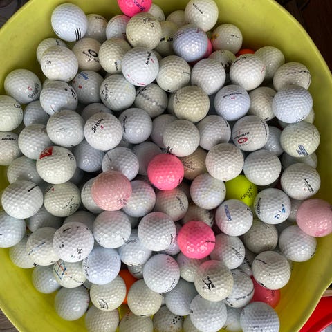 Pussillinen sekalaisia golfpalloja