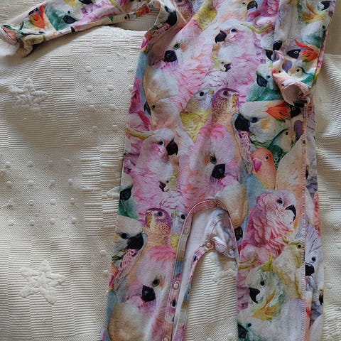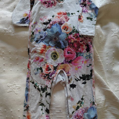 POMPdeLUX yökkäri/ jumpsuit haaranapeilla. Koko 80. Väljää mallia. Kunto muuten moitteeton, mutta huomasin pienen himmeän jäljen kyljen kohdalla. Saattaa lähteä tahra poistolla. Huomioitu hinnassa. Hajusteettomasti pesty.