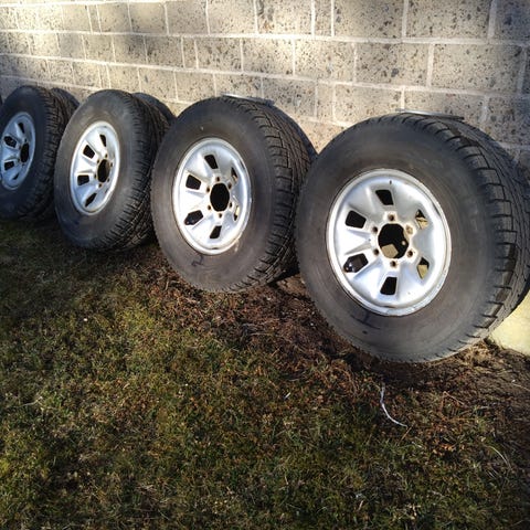 Myydään Toyota Hiluxin renkaat. Vanteet hyväkuntoiset ja renkaissa hyvin pintaa. Yhdessä renkaassa pieni vekki kyljessä mutta pitää ilmat sisällä (näkyy kuvassa).