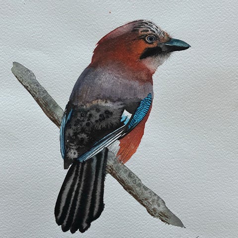 Lintuaiheinen akvarellimaalaus