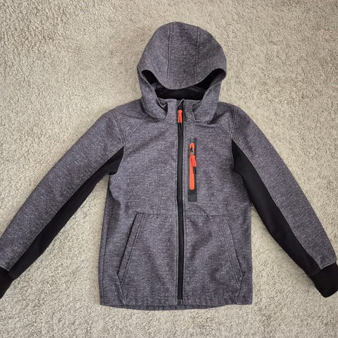 Myydään harmaameleerattu Everestin softshell-takki lapselle. Koko 146 - 152 cm. Edessä vetoketjukiinnitys sekä kaksi vetoketjullista taskua. Takana helmassa heijastin. Sisäpuoli mustaa kangasta.