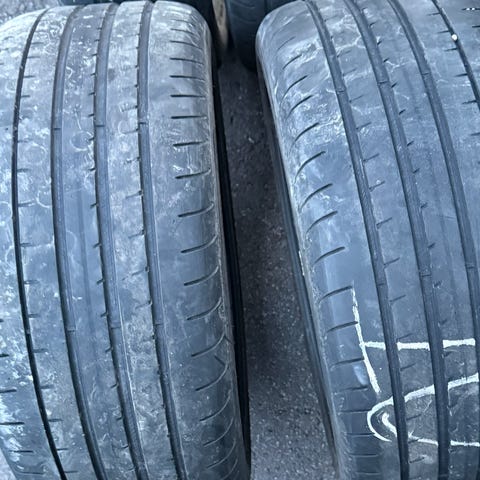 2 hyvää kesärengasta Nexen 245 45 ZR 17 . Pintaa 6-7 mm . Niin sanotut vannesuojalla varustetut renkaat .