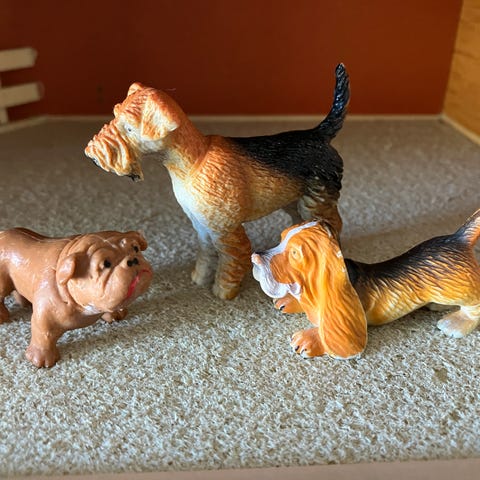 Kolme Schleich koiraa. Maalikulumia on, muuten ehjät.