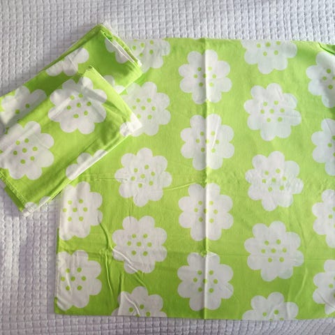 Vihreä verho, vihreä pöytäliina, retro verho, 70-luvun verho, 70-luvun kangas, retro kangas