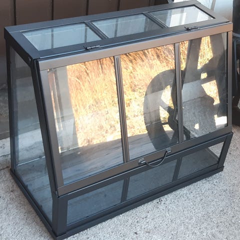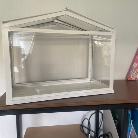 Valkoinen minikasvihuone lasia ja metallia