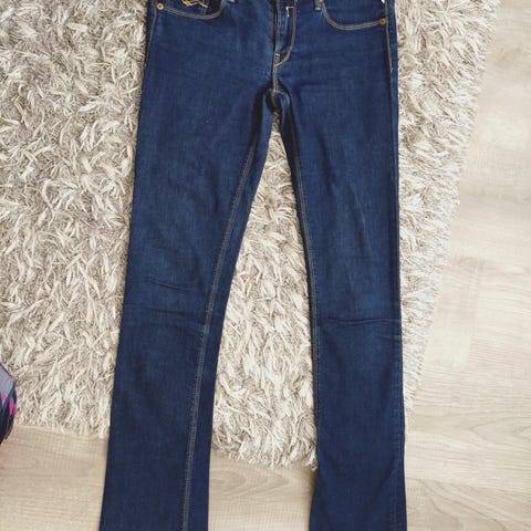 Ei koskaan käytetty New Yorker farkut, sininen denim. Naisten malli, koko S ja vyötärökoko W26. Hieman levenevälahkeinen malli. Takana taskut ja koristekirjailut. Sopivat arkipukeutumiseen ja yhdisteltäväksi erilaisten yläosien kanssa.