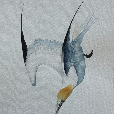 Lintuaiheinen akvarelli