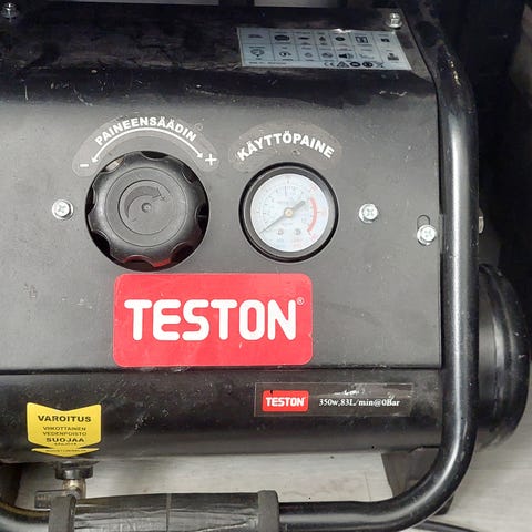 Siitä tehokkaampi kompressori kaupan. Käytössä ollut noin 300-400 tuntia. Hyvin toiminut. Öljyjä vaihdettu säännölisin väliajoin. https://www.ikh.fi/fi/kompressori-3-v-7-5hp-925l-200l-musta-xt200925