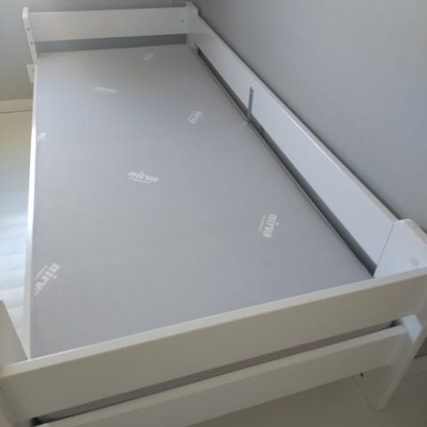 AVAroom classic sänky 80x200, valkoinen. Materiaalina laminoitu koivuvaneri. Halutessa saa mukaan patjan ja kuvassa olevan AVA päiväpeitteen, missä vetoketjut molemmin puolin ja päiväpeiton petaaminen onnistuu helposti.