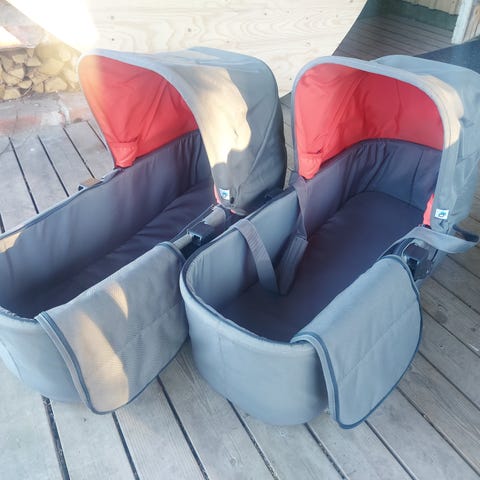 Bumbleride sisarusrattaat kahdelle lapselle rinnakkain. Rattaissa on musta kangas ja neljä ilmakumipyörää, joista edessä kääntyvät pyörät. Molemmille lapsille on omat istuinosat, turvavaljaat ja jalkatuet. Suuret kuomut suojaavat lasta ja alaosassa on tavarakori. Rattaat soveltuvat kahden lapsen kuljettamiseen yhtä aikaa.