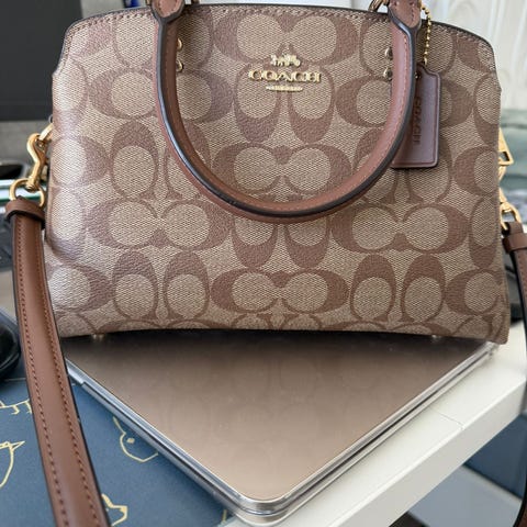 Coach nahkainen käsilaukku naisille. Laukussa on kaareva yläosa, kaksiosaiset kantokahvat sekä irrotettava ja säädettävä olkahihna. Materiaalina on sileä nahka ja pinnassa on Coachin monogrammikuosi. Laukku suljetaan vetoketjulla. Sisäpuolella on useita lokeroita ja taskuja pienten tavaroiden järjestelyyn. Pohjassa on metallinastat, jotka suojaavat laukun pohjaa. Sopii arjen ja vapaa-ajan käyttöön.