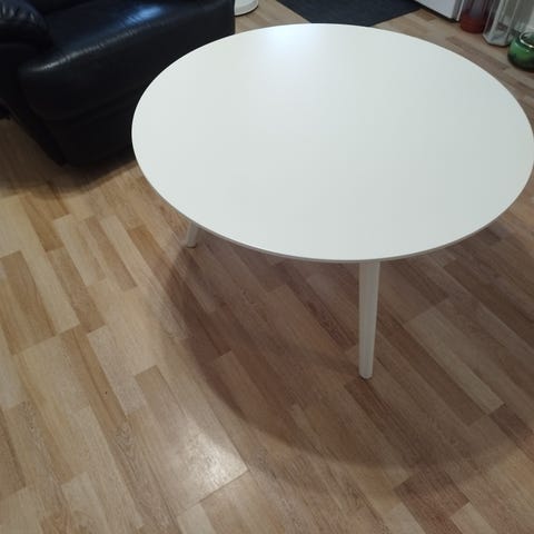 Hyväkuntoinen pyöreä sohvapöytä.