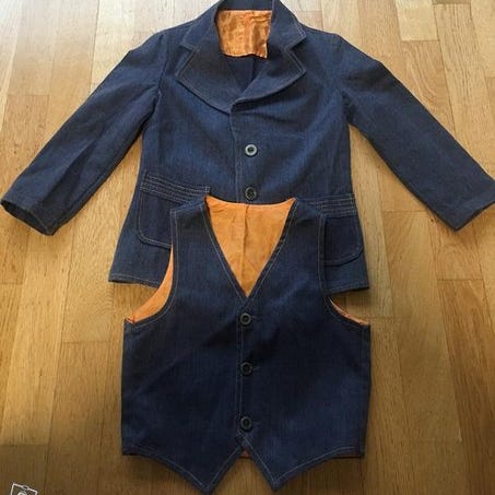 Juhlaliivi n.5-vuotiaalle (110cm). Taskussa kiinteänä taskuliina. Vaalean sininen paita myydään erikseen.
