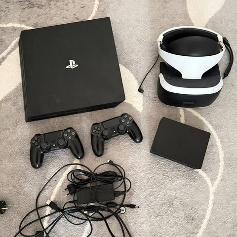 Myydän Sony PlayStation 4 Pro 1 TB pelikonsoli musta, malli CUH-7116B. Mukaan 1 ohjain sekä HDMI- ja virtapiuha.