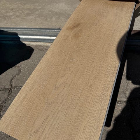 Fine Floor Vinyl Plank -lattialauta, sävy champagne. Tuote on vaaleasävyinen vinyylilattia, jossa puukuosinen pinta. Sopii sisätilojen lattiamateriaaliksi esimerkiksi olohuoneeseen, makuuhuoneeseen tai muihin asuintiloihin. Pakkaus sisältää vinyylilautoja, jotka asennetaan valmistajan ohjeiden mukaan toisiinsa lukittuvalla järjestelmällä tai muulla ohjeistetulla tavalla. Vinyylilattia on helppohoitoinen ja soveltuu tiloihin, joissa halutaan puulattian näköinen mutta kulutusta kestävä pinta.