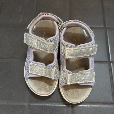 Birkenstock lasten sandaalit tytöille, koko 28. Sandaaleissa on vaaleanpunainen, glitterpintainen päällinen ja kaksi säädettävää remmiä soljilla jalkapöydän päällä sekä nilkkaremmi. Pohjallinen on muotoiltu tukemaan jalkaa ja ulkopohja on kuvioitu pidon parantamiseksi. Soveltuvat arki- ja kesäkäyttöön.