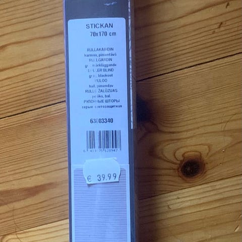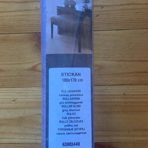 Myydään pimentävä rullaverho puukuviolla. Leveys 60cm.
