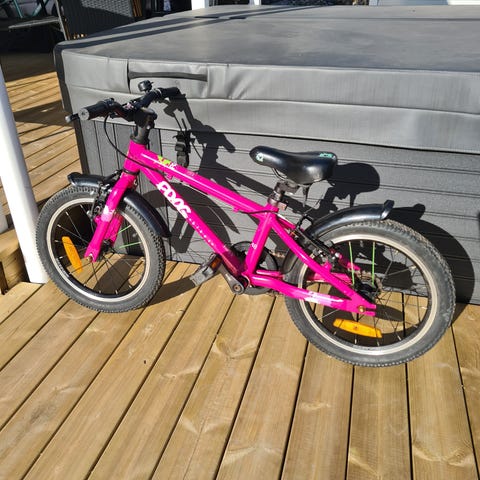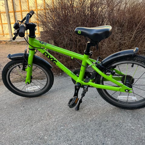 Myydään hyväkuntoinen Frog 48 16"lasten polkupyörä. Sopiva 4-6 -vuotiaalle. Mukana tulee työntötanko.