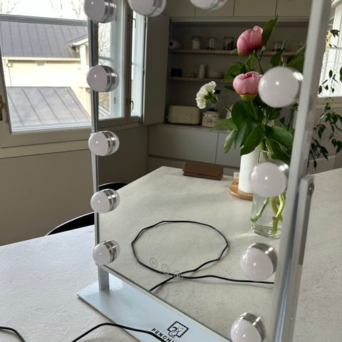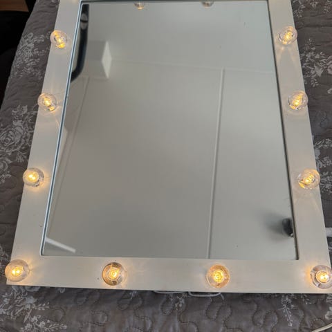 Meikkipeili valoilla. Kork.41cm, lev.30cm. Kuin uusi.