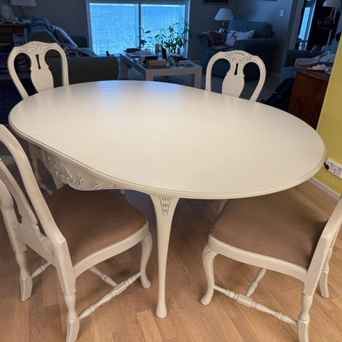 Rokokoo ruokapöytä jatkettavalla kannella ja tuolit, puu, ruskea