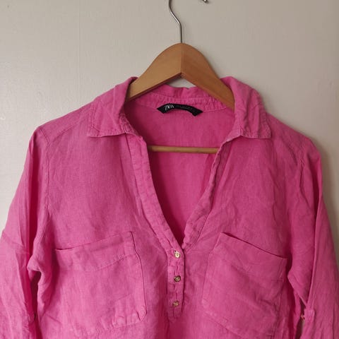 Zara napitettava pellavapaita, naisten koko S. Sivuissa pienet halkiot. Sekä postitus että nouto Kalasatamasta onnistuvat :)
